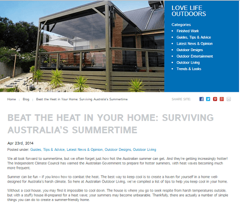 (Article excerpt and image from “Beat the Heat in Your Home: Surviving Australia’s Summertime”, Australian Outdoor Living)